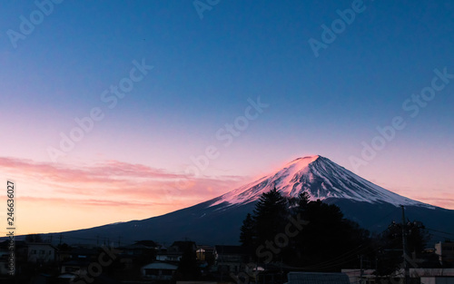 Fototapeta premium Beautiful Fuji mountain on evening with cold weather at lake side
