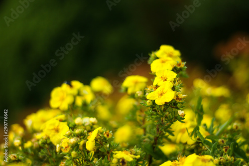 Obraz premium Beautiful garden park view with yellow blooming flowers