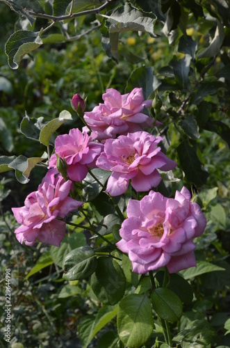 © Анна , Fototapeta premium Beautiful, garden roses on a green background on a summer day.
