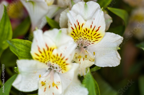 © Wingedbull, Fototapeta premium Beautiful gift bouquet of various colorful decorative summer flowers
