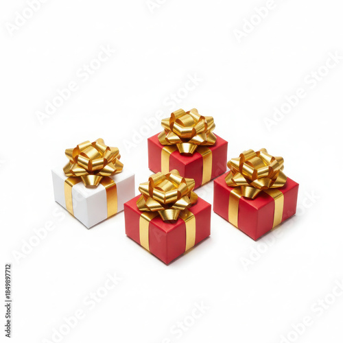 Obraz premium Beautiful gift boxes with golden ribbons and bows