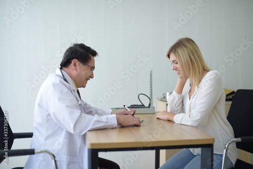 © tharathip, Fototapeta premium Beautiful girl consulted the doctor