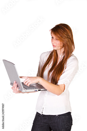 Naklejka premium Beautiful Girl Holding a Laptop
