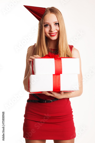 © _chupacabra_, Fototapeta premium Beautiful girl holding birthday gifts