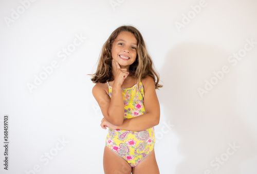 Obraz premium Beautiful girl in colorful swimsuit smiling