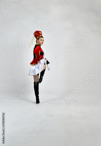 © константин константи, Obraz premium beautiful girl in red hussar uniform marching with a sword