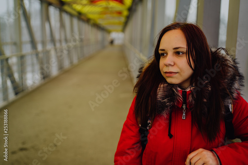 Fototapeta premium Beautiful girl on the bridge, looking into the distance