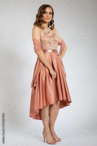 © hreniuca, Fototapeta premium beautiful girl posing in orange dress