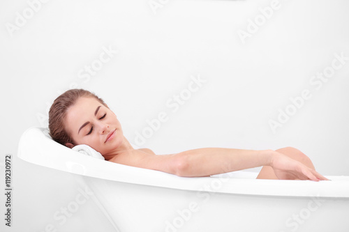 Obraz premium Beautiful girl relaxing in bathtub