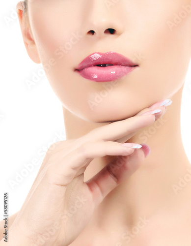 © Nobilior, Obraz premium Beautiful girl with clean fresh skin, white background