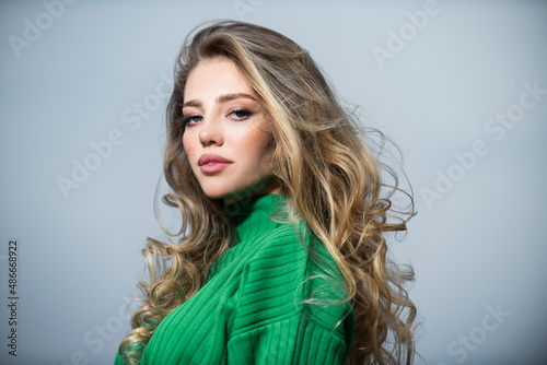 Fototapeta premium Beautiful girl with clean skin, natural make-up. Portrait of beautiful young woman. Sensual beauty female model face close up. Natural beauty woman.