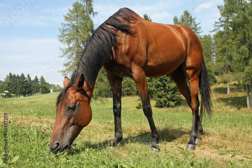 © ChiccoDodiFC, Fototapeta premium beautiful glossy brown horse grazing the grass