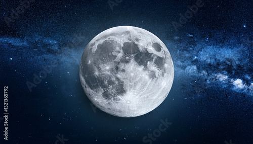 © mariavu, Obraz premium Beautiful glowing big fullmoon on a dark night sky full of stars background