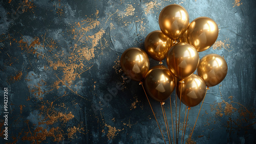 © Anatoli, Naklejka premium Beautiful golden balloons on a dark background close-up
