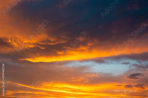 Fototapeta premium Beautiful golden colored clouds on sunrise sky.