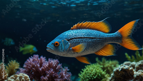 © Ali hasnain, Naklejka premium Beautiful Golden Fish in Sea tank