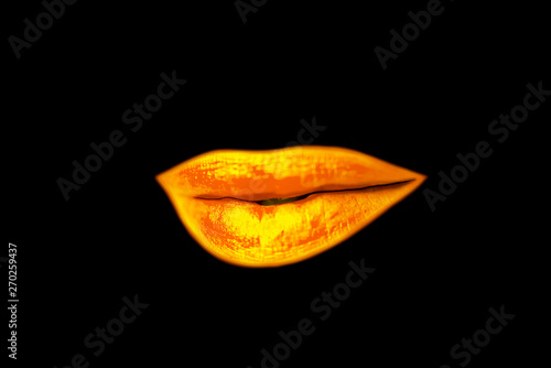 © mikitiger, Naklejka premium beautiful golden lips love on a black background, abstraction