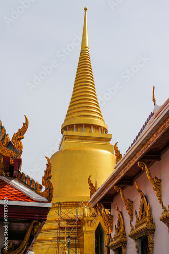 Naklejka premium Beautiful Golden Pagoda in Grand Palace the Emerald Buddha Temple Thailand