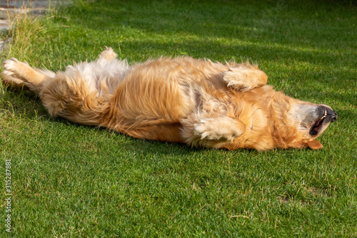 © wjarek, Fototapeta premium beautiful golden retriever on green grass in garden