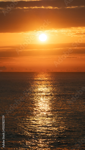 © Barry, Fototapeta premium Beautiful golden sunset over the ocean. Vertical background image.