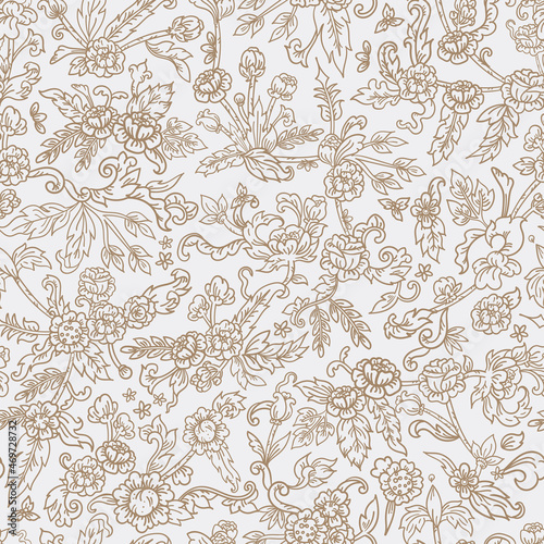 © Wiktoria Matynia, Fototapeta premium Beautiful golden Thai pattern - traditional floral seamless pattern from Thailand