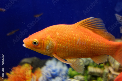 Fototapeta premium Beautiful goldfish, fishes. Macro photography.