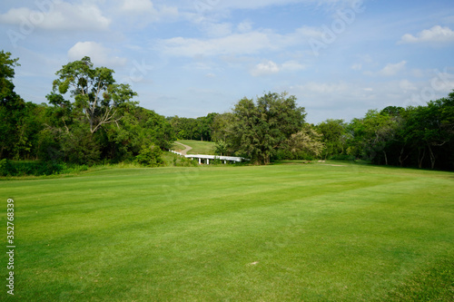 Obraz premium Beautiful golf course in a sunny day. Background evening golf course has...