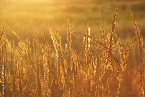 Fototapeta premium beautiful grass seed in the sunset