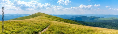© Space Priest, Fototapeta premium Beautiful, grassy hillside with a clear blue sky