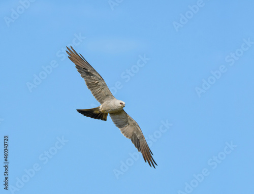Obraz premium Beautiful gray Mississippi Kite soaring against blue sky