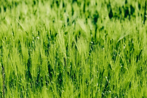 © nblxer, Obraz premium Beautiful green Barley growing in field, rural scenery. Finland