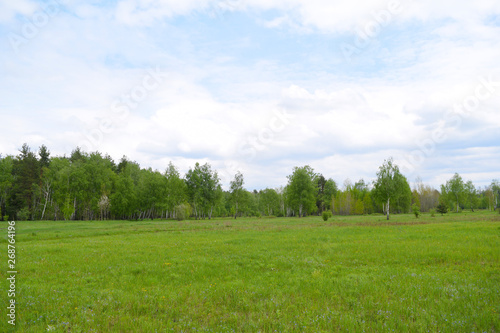 Obraz premium Beautiful green field near the forest. Summer landscape.