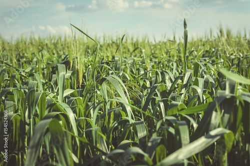 Fototapeta premium Beautiful green field with young wheat. Stock image.