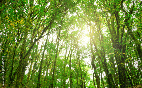 © oatawa, Naklejka premium beautiful green forest and sunlight