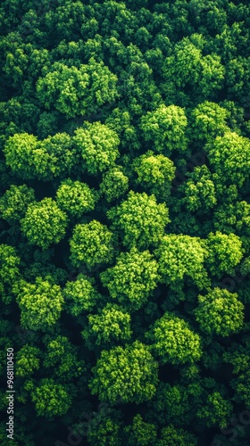 Naklejka premium Beautiful green forest canopy forming abstract shapes from above