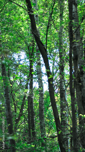 © Caroline, Fototapeta premium Beautiful green forest in early autumn background