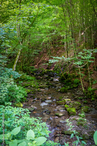 © Laslo, Obraz premium beautiful green forest with its creek and moss covered stones