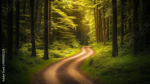 © Anar, Obraz premium Beautiful Green Forest with Trees and a Path in Spring or Summer. AI generated illustration