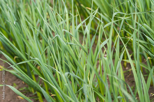 © Artūrs Stiebriņš, Obraz premium Beautiful green garden view of growing grass.