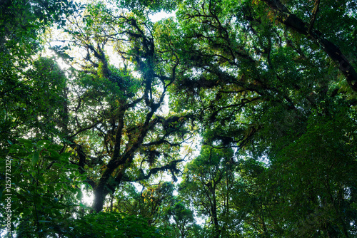 Fototapeta premium Beautiful green leaf in the forest. Nature background.