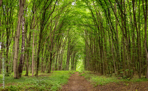© Bondariev Volodymyr., Naklejka premium Beautiful green long tunnel in the forest, wonders of nature.