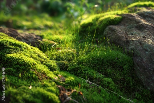 Fototapeta premium Beautiful green moss texture thrives in outdoor light showcasing nature's...