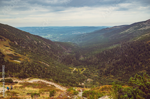 Fototapeta premium Beautiful green mountain forest landscape. Karkonosze National Park, Poland.