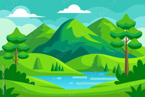 Obraz premium Beautiful Green Nature Scenery Landscape vector Illustration