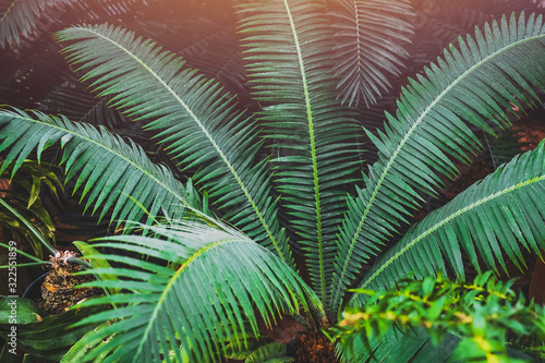 Fototapeta premium Beautiful green palm leaves. Tropical garden on a sunny day.