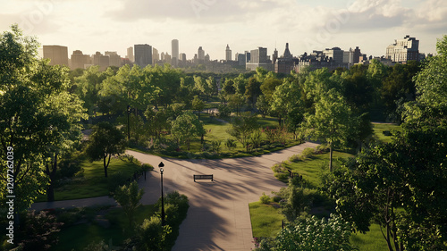 © AI PP, Fototapeta premium Beautiful green park. Generative Ai.