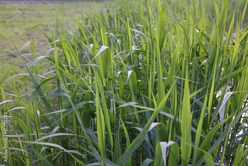 © New Africa, Obraz premium Beautiful green reed plants growing outdoors, closeup