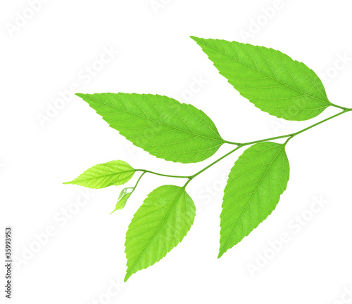© wolfelarry, Fototapeta premium Beautiful green spring branch isolated on white background