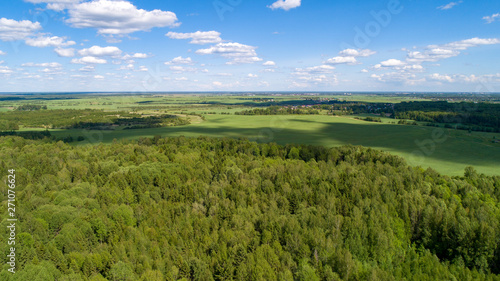 Obraz premium Beautiful green summer field and forest with shadow of cloud