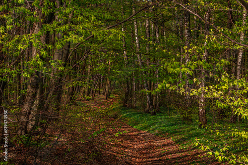 Fototapeta premium Beautiful green summer forest. Spring background, backdrop
